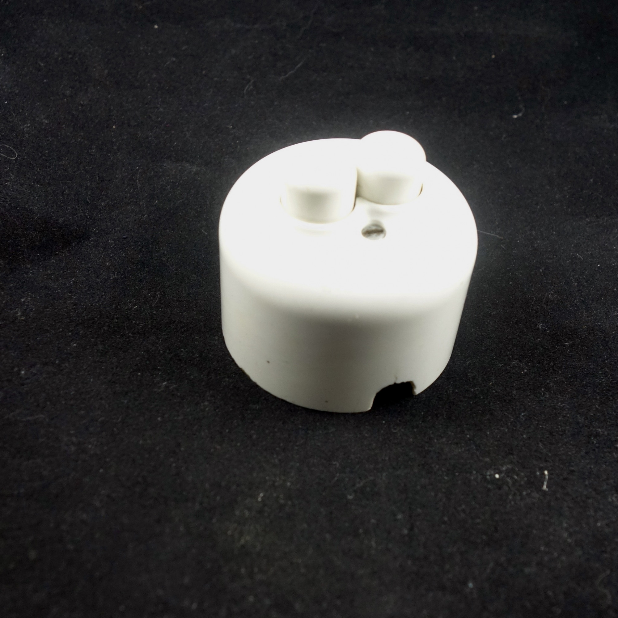 Ca 5,5 cm i dia, höjd ca 3,5 cm, uttag för ledning gjord