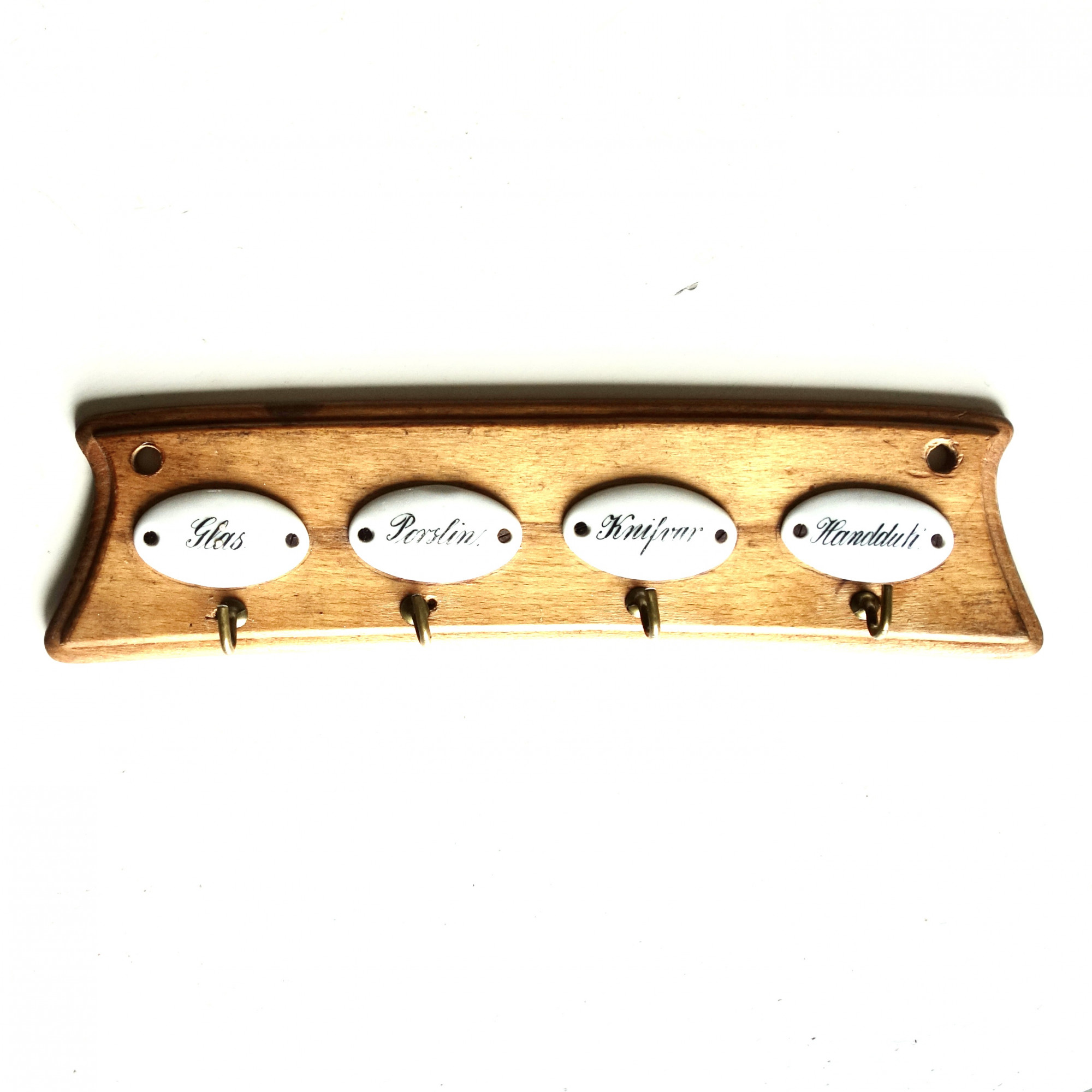Ca 29x7 cm. skyltar i porslin, krokar i mässing