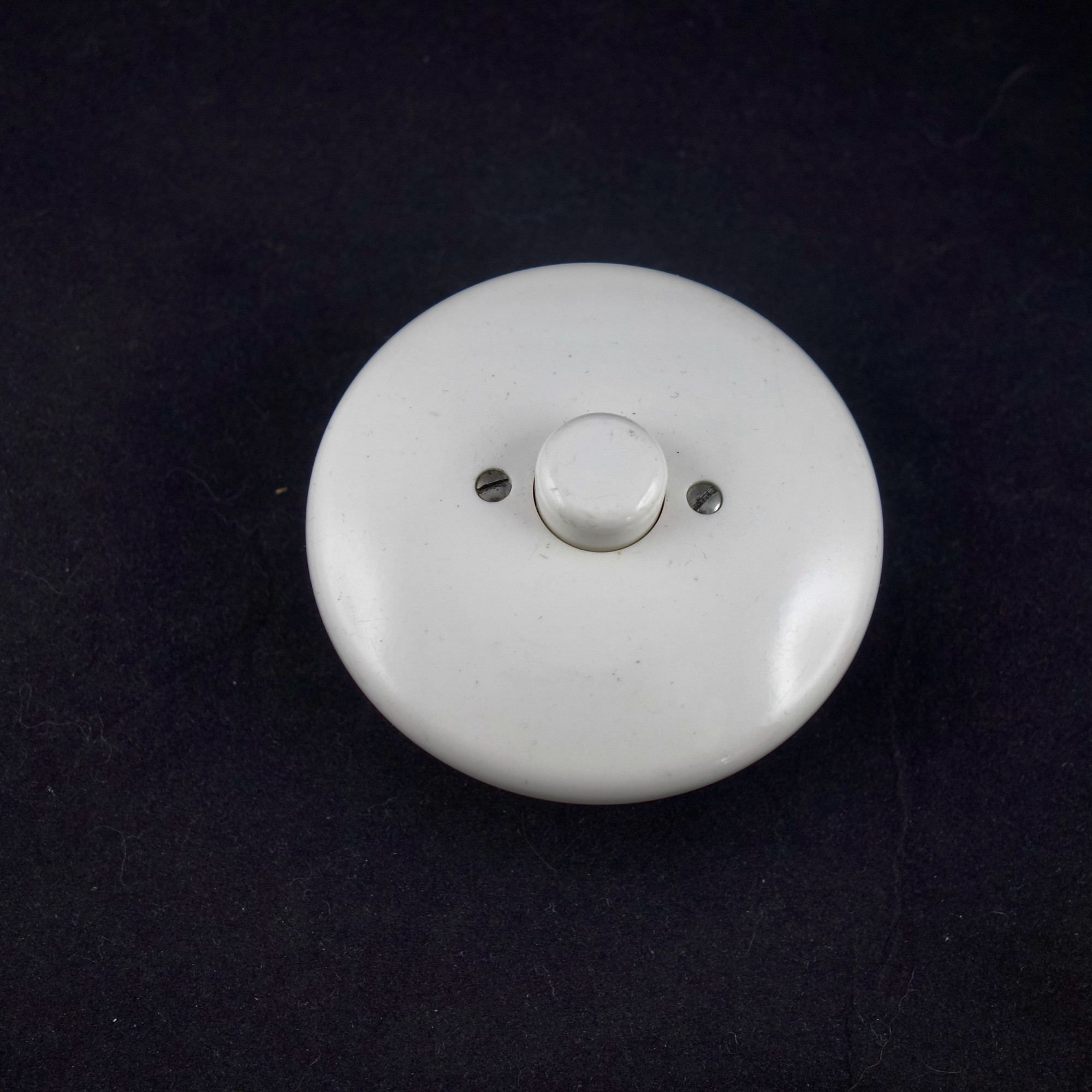 Dia ca 8 cm, benvit/vit med trappfunktion för tre kablar, en för fyra kablar, slät yta och lätt buktat,